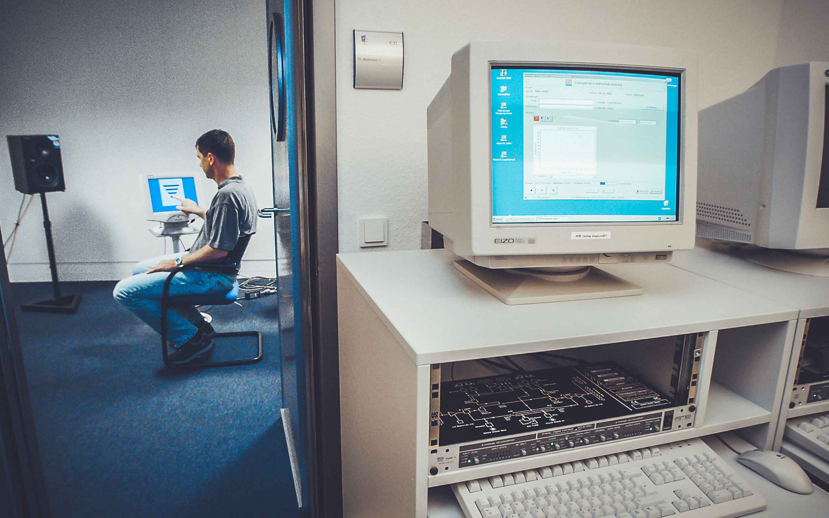 Insgesamt elf Messräume für akustische und audiologische Messungen mit einer Größe von 3 bis 29 m2 Grundfläche stehen im Haus des Hörens zur Verfügung. Sie werden für Grundlagenforschung, Auftragsforschung für die Industrie, Entwicklung und Optimierung neuer Verfahren und Produkte für die Diagnostik und medizinische Versorgung von Hörstörungen, sowie Beratung von Menschen mit Hörproblemen genutzt. Ergänzt werden unsere Laborräume durch den KAS und das audiovisuelle Labor am Birkenweg.