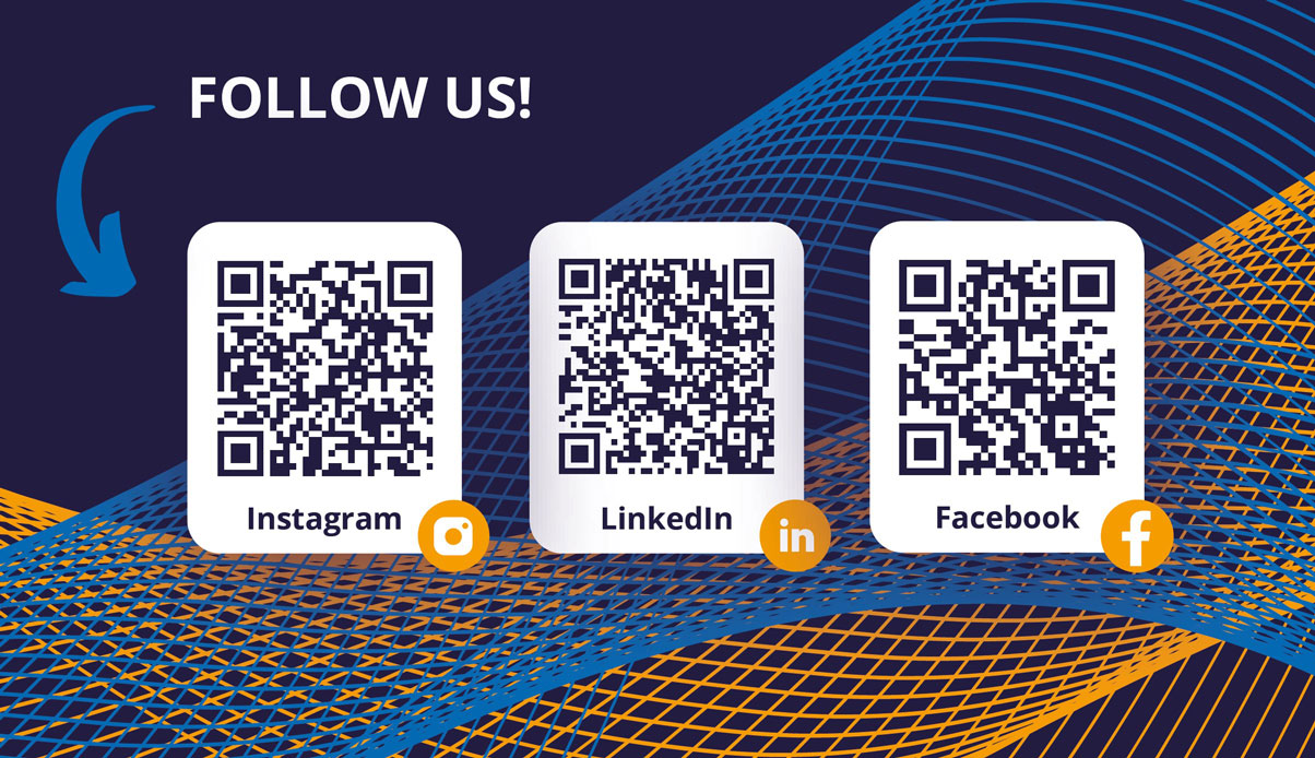 Folgen Sie uns und bleiben Sie stets informiert! Einfach oben QR-Codes einscannen oder über die Button direkt auf Instagram, LinkedIn und Facebook gelangen.