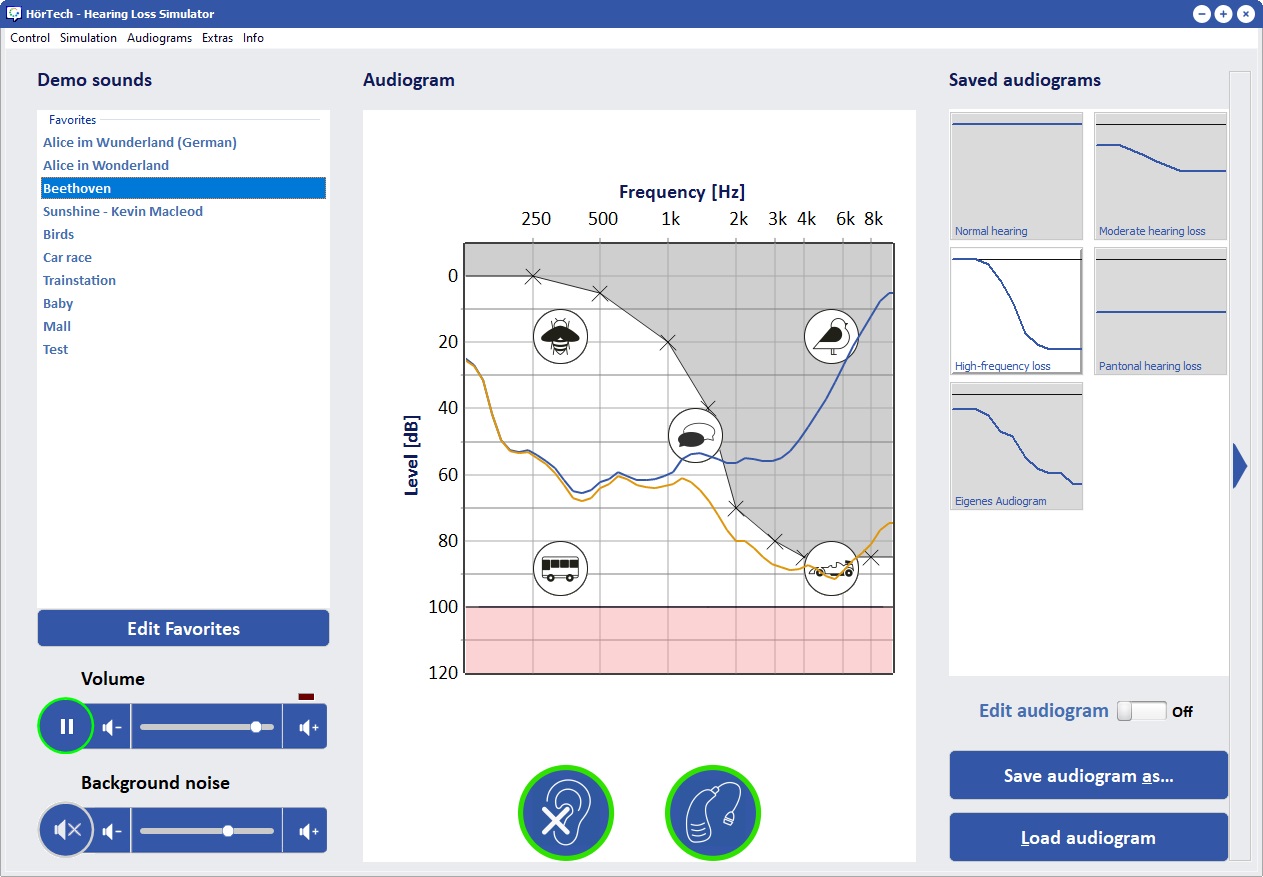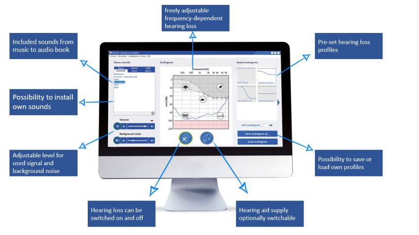 Hearing loss has many consequences for those affected and also for their environment. The hearing loss simulator "HSIM" is a simple and effective tool that allows people with hearing loss to experience an individual hearing loss and the use of hearing instruments for people with good hearing.