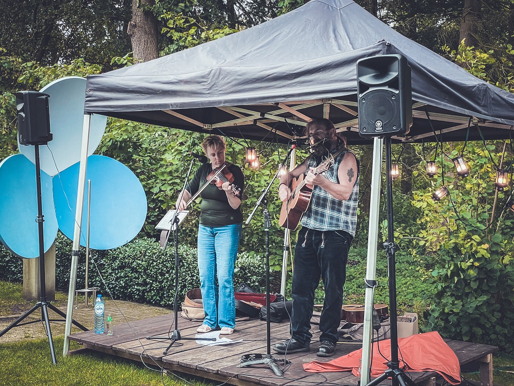 A garden party with music and feasting awaited the visitors in the hearing garden at the House of Hearing in Oldenburg. The two musicians Annemarie & William von Rapalje played many well-known Irish melodies and opened the ears of the listeners.
